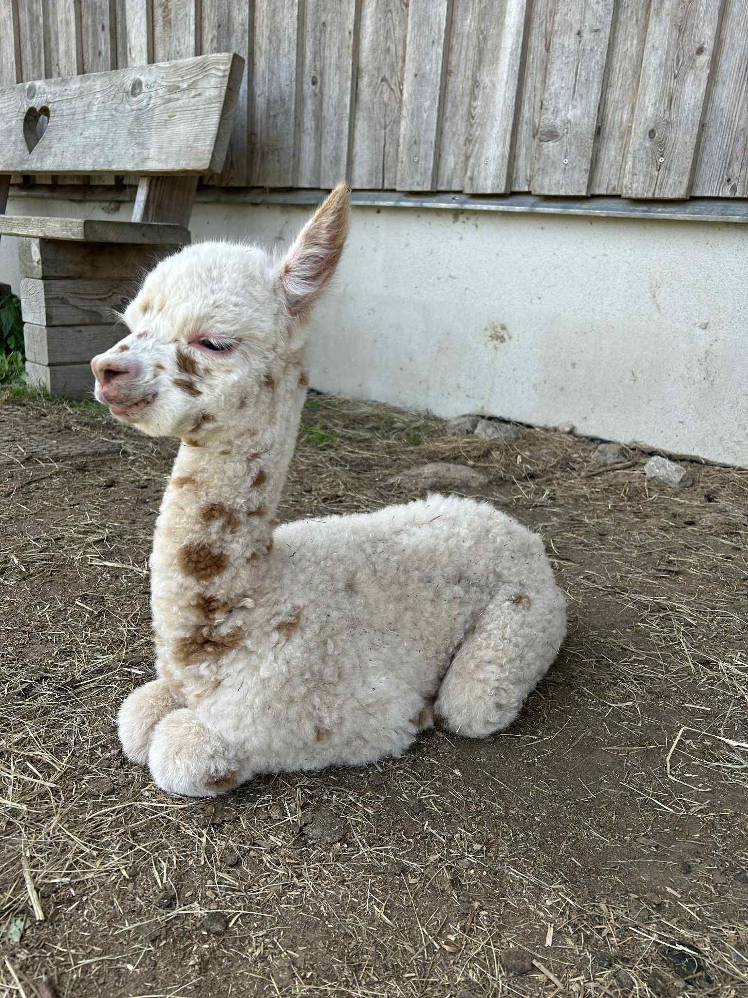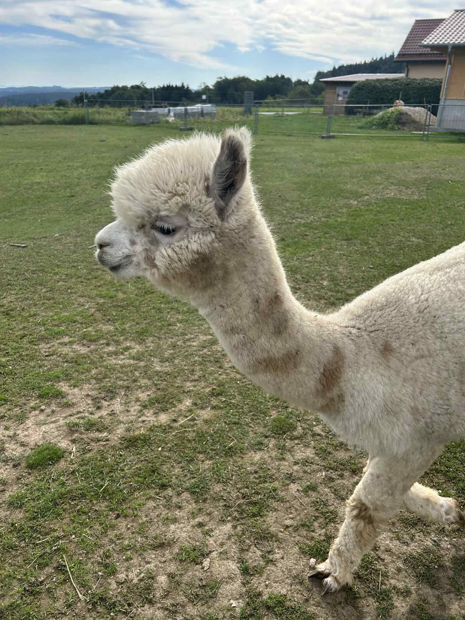 Alpakas werden einmal jährlich geschoren. Meist im Mai. Die Wolle wird zu Betten verarbeitet und Strickwolle versponnen. Es hat schon was wenn man eine Mütze trägt vom eigenen Alpaka ;)
