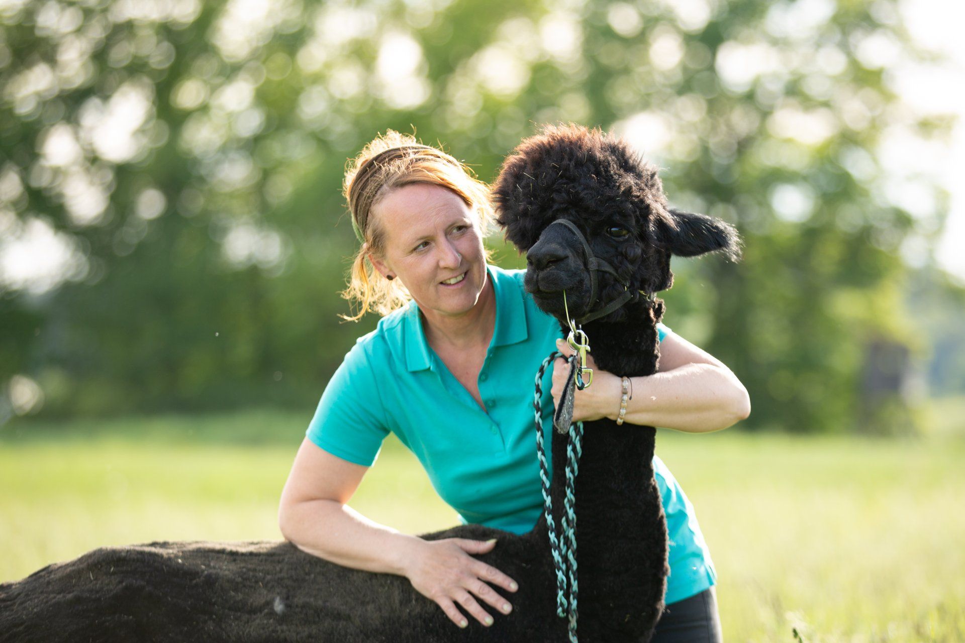 Ein Alpaka zu führen stärkt dass Selbstbewußtsein und beruhigt zugleich. Anfängliche Scheu oder Skepsis werden bei guter Führung schnell abgelegt.